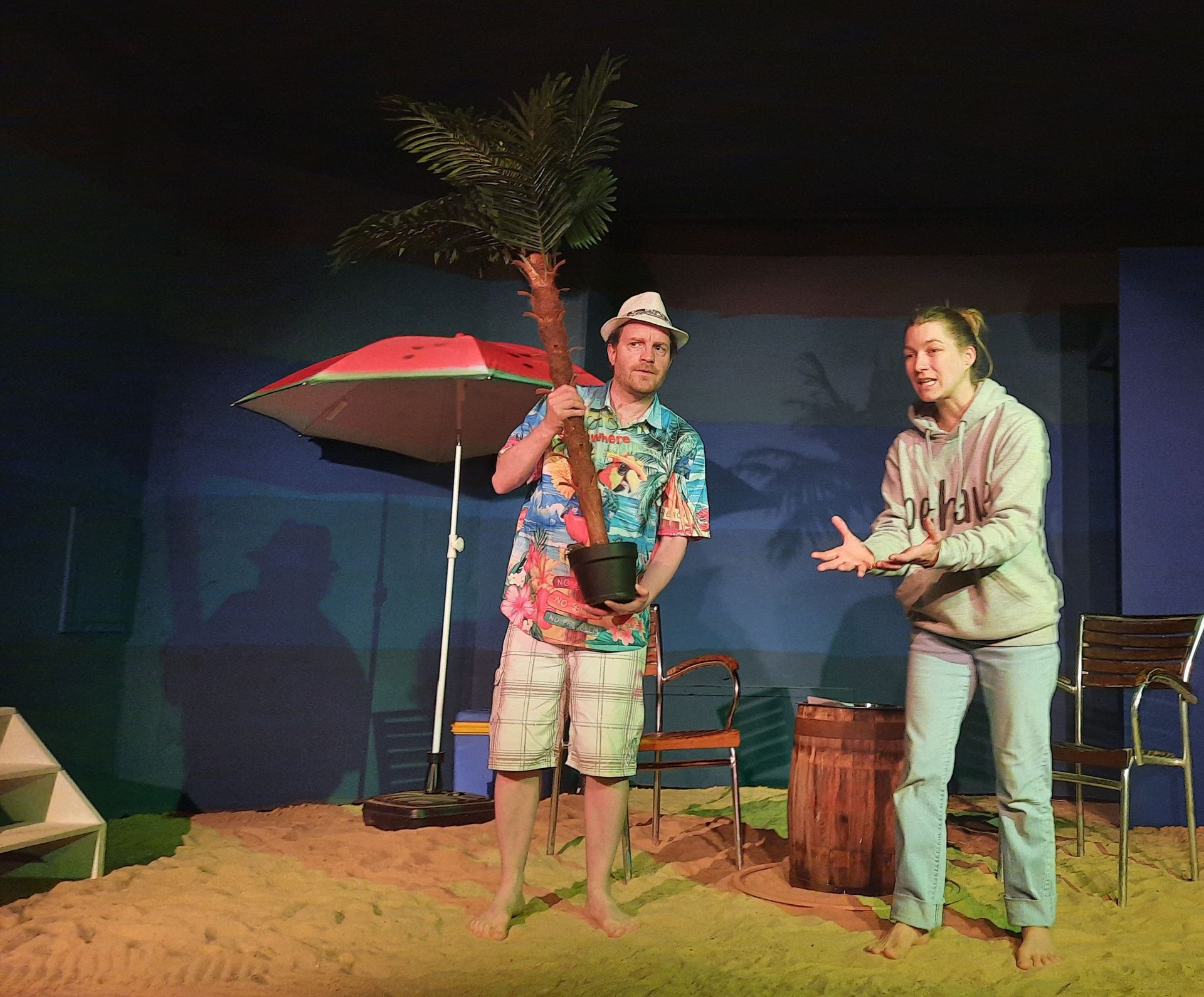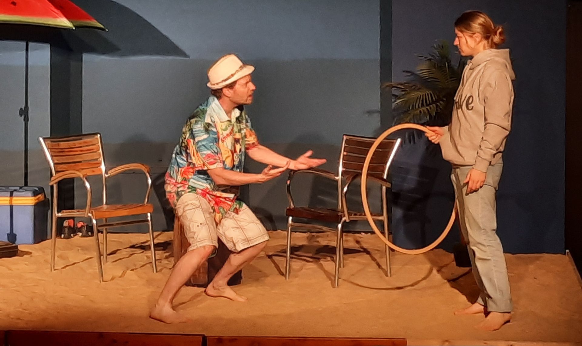 Bei Talk am Strand treffen sich eine Wissenschaftlerin und der Moderator einer TV Talk-Show in einem Fernsehstudio. Nach einer netten Begrüßung und Einleitung in das Fachgebiet der Ethologie erfahren wir die neueste Theorie aus der Verhaltensforschung. Schnell wird klar, dass der Moderator hoffnungslos überfordert ist mit der kompetenten Interview-Partnerin. Schon bald stehen sich die Fronten von Wissenschaft und Aberglaube gegenüber. Auf amüsante Art spitzt sich das Gespräch zu. Dann ist es nur noch ein kleiner Schritt, bis die Fetzen fliegen und wir Zeuge von einem aberwitzigen Wortgefecht aus dem Reich der Wissenschaft werden. Es sind keine Vorkenntnisse erforderlich!